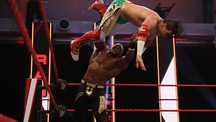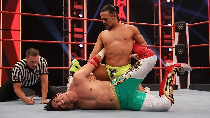 Ну что, давайте по минусам. Опять слили Тозаву. Я понимаю, что это уже не минус, а добрая традиция, но тем не менее. Во-вторых, очень спорная дисквалификация Лэшли. То есть, я могу понять, идею такого букинга, и из матча его выкинуть, и не удержать. Но такая дисквалификация по причине, что он просто оттолкнул судью, что происходит в рестлинг матчах в WWE очень часто, выглядит максимально не правдоподобно. В-третьих, на мой взгляд устраивать гаунтлет-матчи где-то на 40 минут, это всегда рискованно, а особенно на пустой арене. И большая часть матча, в ходе которой Каррийо 90% страдал, а остальные 10% ловил соперников парой-тройкой атак и проводил сворачивания из неоткуда — это достаточно тяжко смотрится. Нам, видимо, хотели показать Умберто как никогда не сдающегося молодца, который способен поймать свой момент, и, окей, я понимаю это, но это так себе пуш. Теперь о плюсах… Появление Стайлза и его победа — это хороший выбор, хотя хотелось, конечно, чтобы с «Феноменальным» перепаковку какую-то что ли намутили. Это бы и рестлера встряхнуло, и выглядело бы логично после того, как его похоронили. Возвращение ЭйДжея на экраны — это чуть ли не тема для отдельной статьи сейчас, тут есть определенное количество нюансов. Ну а если в общем и целом, то окей. Это можно было сделать лучше, но итак я не против. Думаю, он и должен брать кейс. Концовка гаунтлет-матча, кстати, была ничего. Последние минуты полторы.