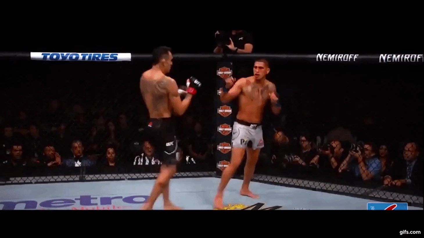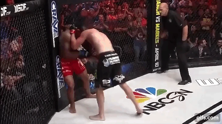 На выходе из ближней дистанции Барбоза позволил себе опустить руки, на что Гэтжи моментально среагировал, оформив, пожалуй, самый яркий нокаут в карьере.