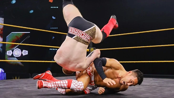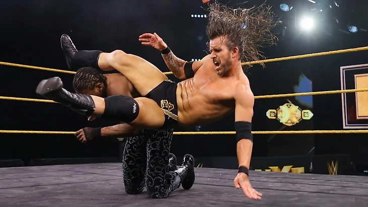Дрим пытался сразу сбивать Адама с толку и чемпиону пришлось действовать на опережение. Проход не удался и Вельветин быстро начал перехват инициативы, успев прогуляться с Коулом на рингсайде. Но вот на ринге Адам вышел на 2 суперкика в бубен Дриму и готовил заход на Last Shot - если бы не перехват на спайнбастер, правда удержание оказалось до 2. Потихоньку парни отошли в угол ринга и их стычка там прибавила по жести - Коул оказался ловчее Дрима на высоте, но затем попытка для Panama Sunrise была переведена Дримом в reverse-STO (угадайте кому таковой финишер принадлежит). После рекламы именно чемпион NXT держал контроль в матче, пока Дрим не обрушился на Коула с кулаками - отход в другой угол ринга всё-таки дал Вельветину шанс на продолжения своей доминации через серию панч-страйков, back elbow и corkscrew-кроссбади. Удержание оказалось для Дрима не шибко успешным и пришлось подключать суперкик - второй заход также вылетел мимо.