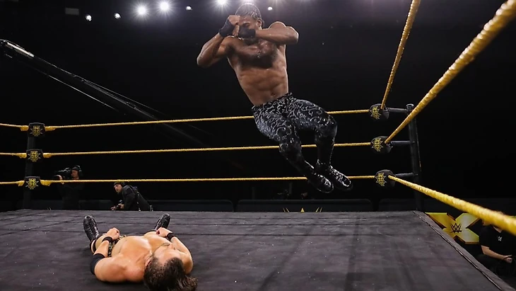 Лихой "Ковбой" решил сделать всё по-быстрому и одним финишером. Но вот мистера борец по имени Дензел показал скорость и силу, проведя бывшему Тревору Ли 2 overhead-суплекса. Толком это не помогло новому джобберу для основного ростера из-за скорости Кэмерона - "Ковбой" снова вышел на разгон и его Caveman Stomp попал в точку, сразив борца до 3.