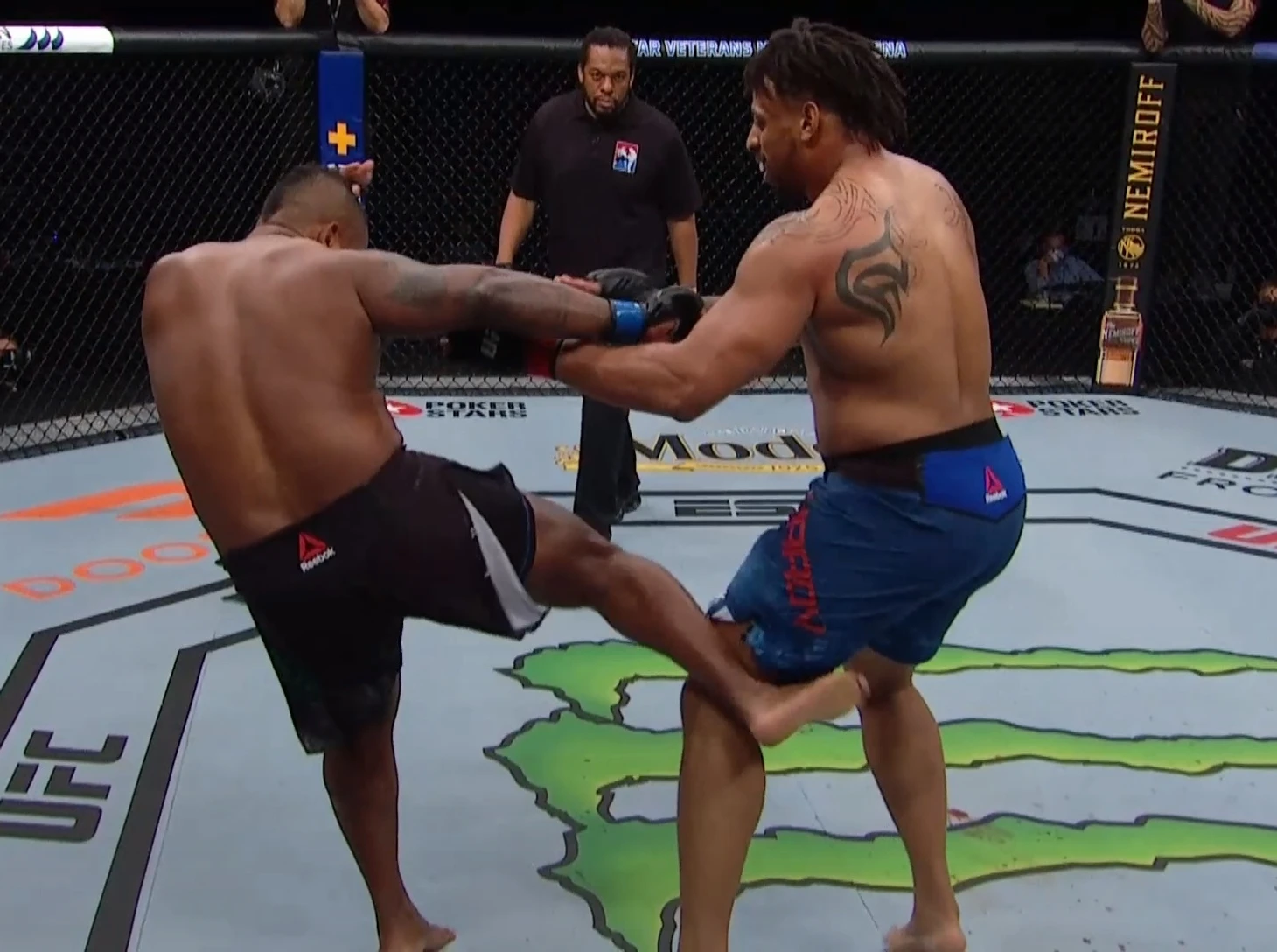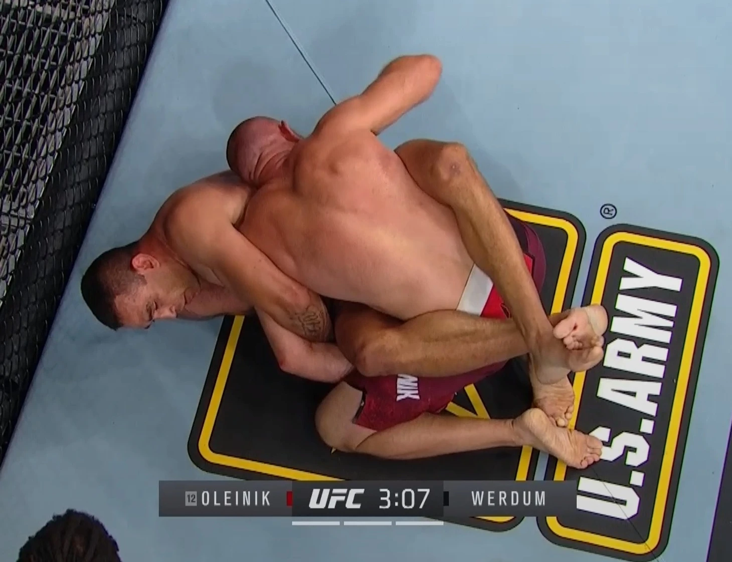 Фабрисио, тебе пора на покой. В этом бою живая легенда продемонстрировал процентов 30 своего потенциала.У него не нашлось ответа на не совсем техничные, но эффективные овер-хенды от Александра. Такое ощущение ,что Вердум пол раунда находился в состоянии гроги и вспоминал зачем он вошел в эту клетку. Лишь со второй пятиминутки он смог противопоставить вайд-панчам россиянина колени в клинче и попытки сабмишнов ( гильотина, рычаг локтя и кимура). Но этого оказалось мало для финиша и бой дошел до решения судей. Голоса разделились : 29-28, 28-29 и 29-28 в пользу Олейника. Россиянин побеждает и поднимается в рейтингах. Вероятно следующим его соперником станет Грег Харди, ибо все топовые бойцы уже имеют пару.