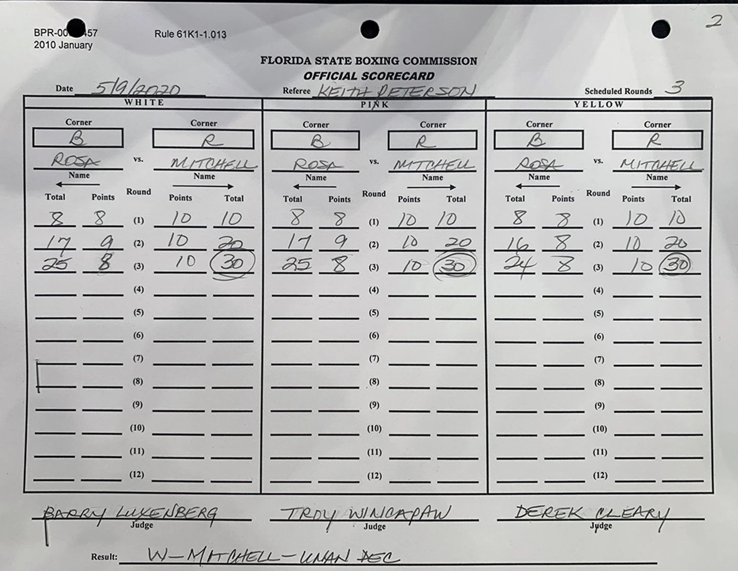 Этот один из тех боев, где борьба очень веселая штука-смотрится на одном дыхании! В учебники по грепплингу однозначно! Митчел побеждает единогласным решением 30-25, 30-24, 30-25!