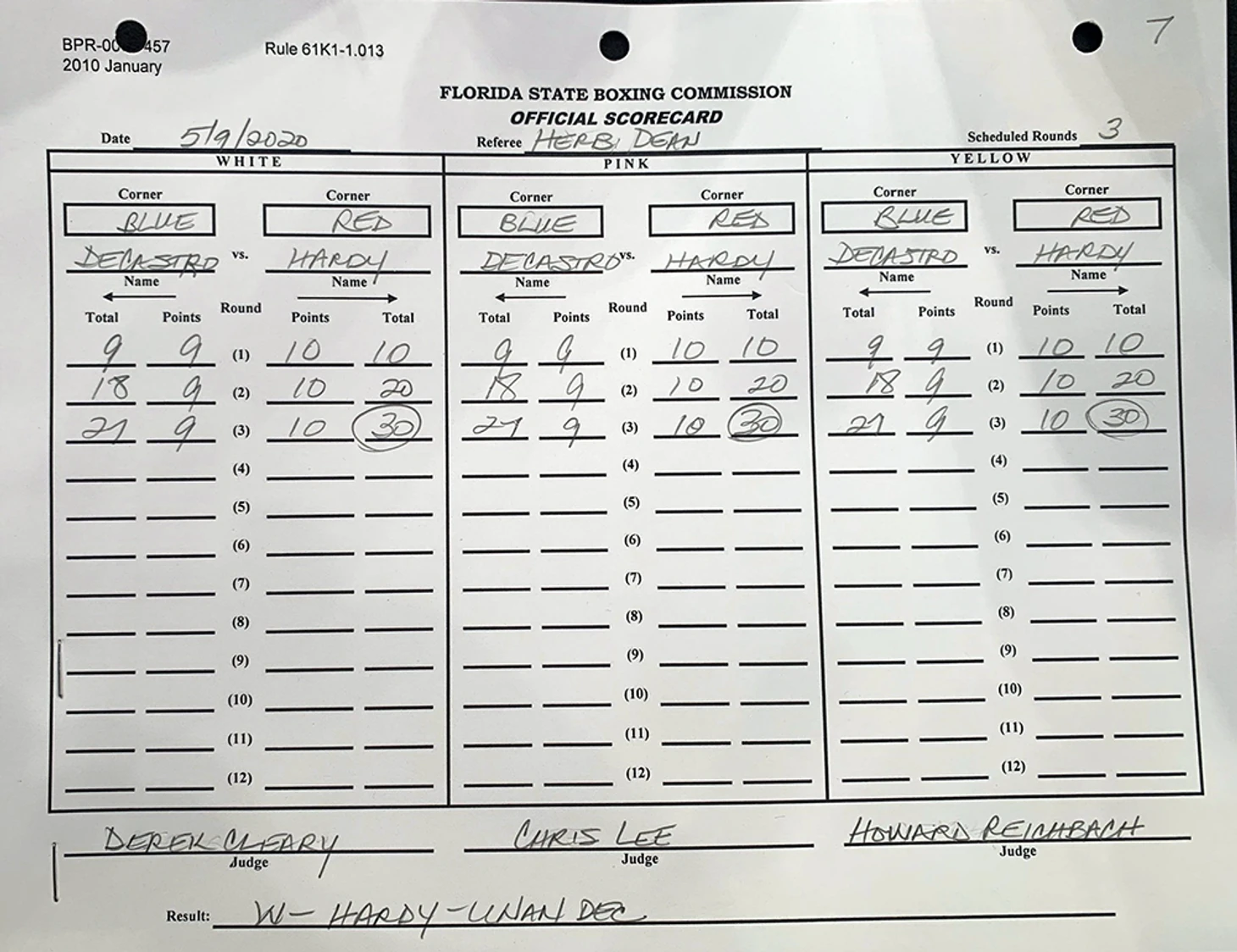 Нет ничего больнее ,чем попасть лег-киком в блок ! Любой кто это испытал не забудет эти "чудесные" ощущения. Спросите хотя бы Андерсена Сильву:) Бой можно разбить на 2 ровных отрезка, разделенных блоком лег-кика в середине второго раунда. В первой половине Кастро отлично миксовал двойки хуками с лоу-киками по ведущей ноге Харди и довел ее до фиолетового цвета к середине второго раунда. Именно тогда Грэг услышал комментатора Д.Кормье и заблокировал один из них. Судя по реакции Кастро -пару пальцев на ноге он сломал. После этого момента игра пошла в одни ворота: Кастро больше не пробивал лоу, движение замедлилось, а комбинации хуков превратились в редкие одиночные удары. В такой ситуации Харди спокойно и планомерно разбирал соперника и довел бой до победы единогласным решением судей 30-27.