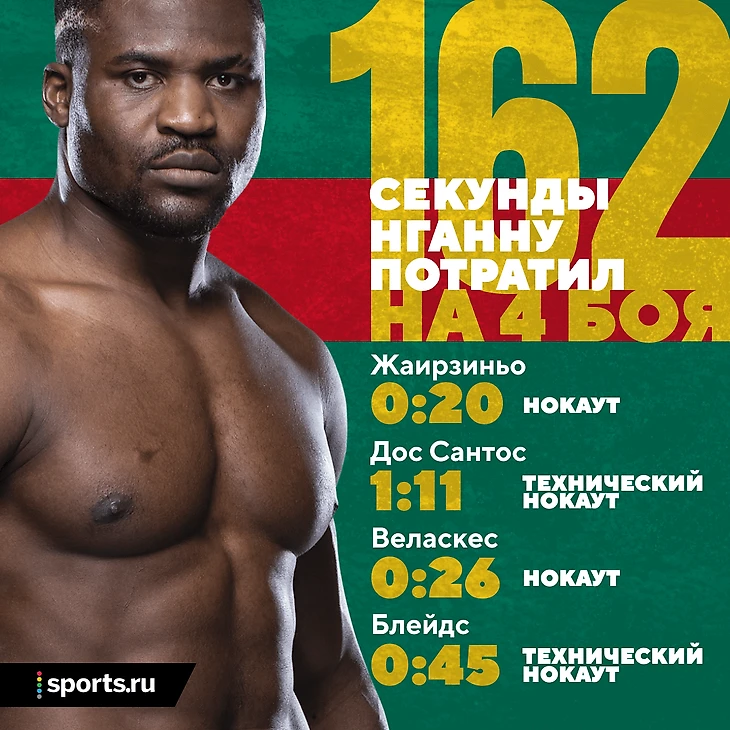 Главный панчер UFC снова победил нокаутом. Нганну потратил 162 секунды на 4 боя