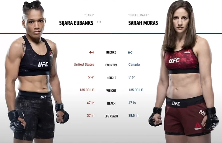 Сара Морас имела 3 поражения подряд, и если бы заполучила 4 ,то это прямой билет на выход. На UFC 242 она не делает вес,но досрочно эффектно побеждает техническим нокаутом.
