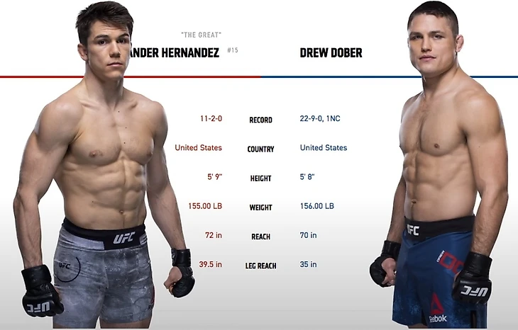 Alexander "The Great" Hernandez (11-2) vs. Drew Dober (22-9, 1 NC)
