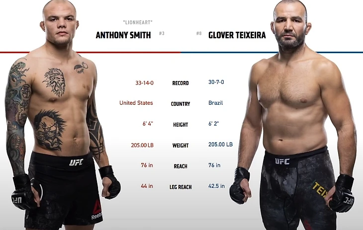 Anthony "Lionheart" Smith (33-14) vs. Glover Teixeira (30-7)