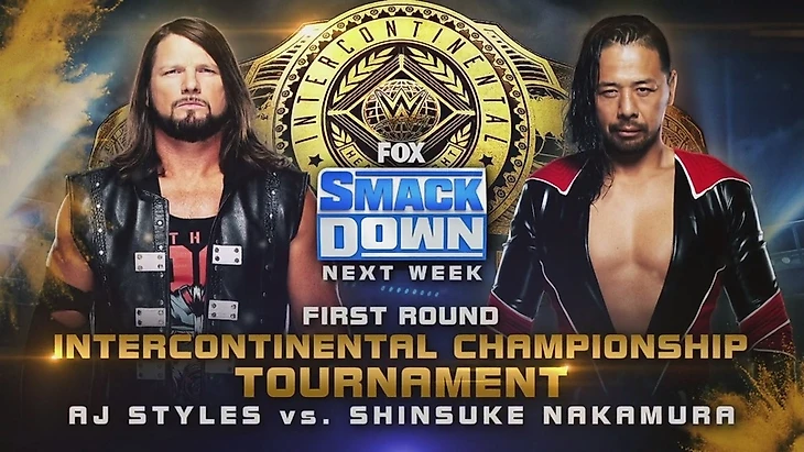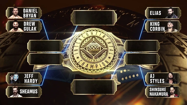— Наш дуэт комментаторов представил нам сетку турнира за ИК-чемпионство WWE, в котором помимо главных топ-звёзд бренда (коим являются Джефф Харди, Шеймус, Дэниел Брайан, Дрю Гулак, Элайас, Бэрон Корбин и Шинске Накамура) оказался топ-рестлер красного бренда WWE ЭйДжей Стайлз. Каким макаром он мог оказаться в этом составе - это уже только новое правило на межбрендовые "приглашения" должно типа дать объяснения (И что ещё очень интересно - пары для турнирных матчей оказались подстать развитию 2-х главных сторилайнов бренда, а вот с парами "Брайан-Гулак" и "Стайлз-Накамура" решили просто поностальгировать. Надо же как-нибудь повышать значимость турнира, ибо с самим титулом WWE пока что никак не сумели справится по спасению его статуса).