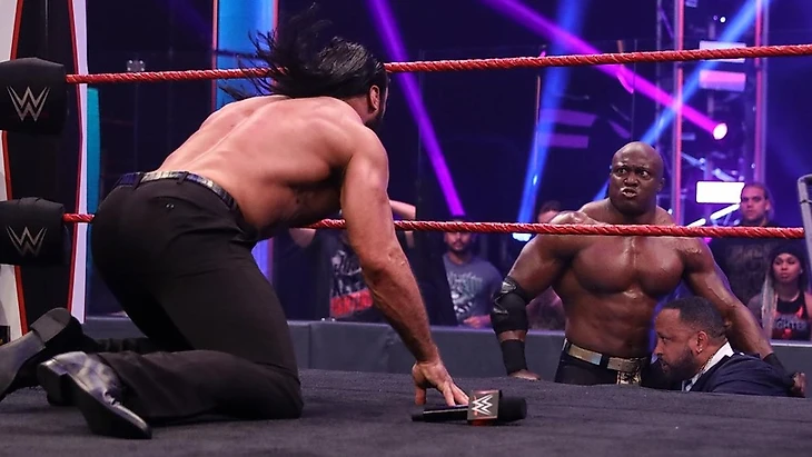 Знаете, матч был средненьким. Вполне смотрибельным, но близко не мэйн-ивентом. И чем такую концовку с DQ, я бы предпочел, чтобы ЭмВиПи все-таки был удержан командными чемпионами, а Лэшли напал потом. Честно и откровенно, Монтелу терять, как рестлеру, нечего, а чистая победа для Street Profits все-такие есть чистая победа. Драка после матча меня повеселила, хоть это и очень-очень тривиальный прием. Забавно, что с одной стороны рестлеров отгородили пластиковыми щитами, вроде тех, что используются на хоккейных аренах, и поставили на расстоянии друг от друга, чтобы соблюдать социальную дистанцию, но при этом вывалили на ринг человек 10 в финальном сегменте. Так руководство все-таки заботится о безопасности сотрудников или нет? Ну ладно. Тандем с ЭмВиПи преобразил Лэшли, и он действительно неплохо смотрится в сравнении с тем, что было совсем недавно, но, имхо, это все еще не тот Лэшли, который кошмарил всех в TNA. Да и результат его матча с Дрю предсказуем, так что мы изначально в эту историю не верим. Но смотреть стало приятней. Вместо никому нафиг не нужного противостояния с Дрю мы получаем достаточно классический, но все же очень крепкий фьюд.