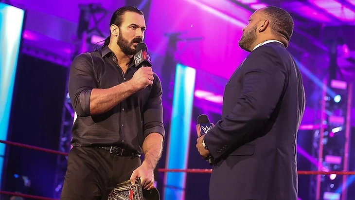 Дрю МакИнтайр нарвался на Кайлу Брэкстон и, предвкушая определенный вопрос, сказал, что, нет, он не планировал вырубать ЭмВиПи своим Claymore, но тот сам напросился. Однако, интервьюер хотела спросить о другом. Что Дрю думает о грядущем матче Лэшли, ЭмВиПи и Street Profits. Чемпион WWE ответил уклончиво, но потом вспомнил, что «он кое-что забыл в раздевалке, и скорее всего, не сможет найти это, пока матч Лэшли не закончится», после чего удалился. Также Ар-Труф прочитал промо о том, что он узнал, кто является чемпионом 24/7 — бывший футболист Роб Гронковски. И теперь он отправится за своим титулом, причем Труф готов встретиться с любым числом футболистов и побить их, лишь бы вернуть свою прелесть. Он даже футбольную экипировку надел. «Гронк» прочитал ответное промо, явно дав понять, что он готов защищать свой титул. Так что, пусть Ар-Труф приходит. Также Кайла взяла интервью у ЭмВиПи и Лэшли, спросив, почему они решили побороться с командными чемпионами. «Вот почему» — сказал Монтел, указав на Бобби. Рик Флэр (внезапно) обратился к нам с экранов, потому что WWE к нему обратились с вопросом о том, кто победит в «величайшем рестлинг-матче в истории». Между Ортоном и Эджем. По мнению Рика лучшим рестлером, с тех пор, кк сам Флэр ушел на пенсию, является Рэнди Ортон. Поэтому он поставил на «Гадюку» в этом самом матче. Ну и под конец Лив Морган зачитала очередное промо, рассказав, что одной из главных проблем в ее жизни была низкая самооценка. Она не может вспомнить этап в своей жизни, когда чувствовала бы себя хорошо, однако она помнит, как в 6 лет задалась вопросом о том, что жизнь готовит ей. Сможет ли она дотянуться до Солнца или рухнет и разобьется. И вот, наконец, когда она попала в WWE и получила свой рестлинг-костюм, на который было нанесено ее имя, Лив поняла, чего ей не хватало. Да, она не получила ответы на все свои вопросы, да и вообще может их не получить, потому что жизнь течет, изменяя эти самые вопросы, но она точно знает, что жива и собирается стать той, кем должна. Морган берет от жизни все.