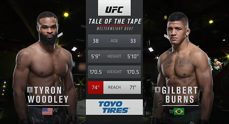 На этот бой можно взглянуть с двух сторон. Первая: Тайрон Вудли имеет большие проблемы. Какого рода они: ментальные, тактические или проблемы с физической подготовкой? На этот вопрос пока нет ответа, возможно, мы узнаем об этом по прошествии времени. Если Тайрон завершит свою карьеру, никто сильно не удивится, но, если он найдет в себе силы поменяться и продолжить драться на высоком уровне, то получит большое уважение от мма-сообщества. Вторая сторона: Гилберт Бёрнс действительно заслуживает быть в топ-5 и претендовать на титульный бой. Его прогресс удивляет и даже шокирует – из сильного джитсера с проблемами в стойке Гилберт превращается в отличного универсала практически без слабых мест. Бразилец способен доставить проблемы многим бойцам, но следующая ступень (чемпионский пояс) всё-таки кажется недостижимой для него. Хотя Бёрнс умеет удивлять.