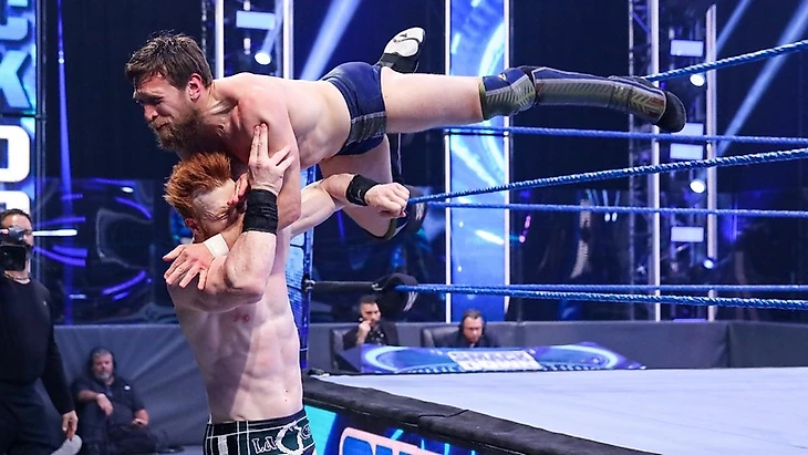 Парни сразу стартовали с силового чейн-рестлинга и делали это весьма бодро, так как знали друг друга, и ощущение старых баталий не ушло с течением времени. Плюс Шеймус пытался в привычной для себя манере словесно давить на давнего своего противника. Брайан не очень долго позволял Шеймусу доминировать в лок-апе и сделал попытку прорыва в углу ринга через серию лоу-киков - ирландец не дал себя взять на слабо и после пары апперкотов от ДБ вернул себе контроль в матче. Правда и Дэниел уже разогнался, так что за счёт коронных манёвров в ринге ирландец был выбит с оного и словил суисайд-дайв от Брайана.