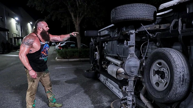— Брон обнаруживает, что стекло его машины разбито. В ярости он узнаёт у охранников, что Миз и Моррисон находятся в белом фургоне на парковке. Строуман находит их и, так как все двери оказываются заперты, просто переворачивает фургон с претендентами внутри.