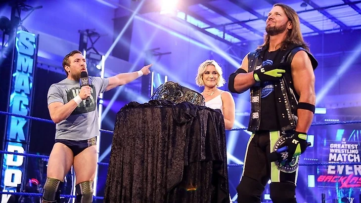 Рене хотела задать вопрос Дэниелу первым, однако Стайлз предложил начать с него, ведь он уже предвидит то, как Брайан назовёт его трусом, тогда как сам тут стоит вместо Шеймуса лишь благодаря вмешательству Джеффа Харди на прошлой неделе. Брайан отвечает, что действительно считает ЭйДжея трусом, но не из-за того, что тот решил просто пройти в финал турнира без матча. Против этого бородач ничего не имеет против. Стайлз же отвечает, что это был умный ход с его стороны, и он не считает доброту Дэниела чем-то плохим. Он считает, что это тупо. Брайан в ответ считает, что у них противоположное мировоззрение. ЭйДжей готов защищать свой титул лишь периодически и против избранных, смотрясь при этом в зеркало и считая себя величайшим чемпионом в истории, пока не появится какой-то случайный парень, который разрушит видение Стайлза. И именно это Дэниел считает трусостью, тогда как Брайан как чемпион готов предоставлять возможности каждую неделю кому угодно, потому что он не лучший — он стремится стать лучшим. Стайлз же считает, что Дэниел будет давать не возможности, а подачки. Точно также как он дал подачку Гулаку быть его тренером. ЭйДжей решает предоставить такую «возможность» (или подачку по его мнению) и бросает вызов на матч. Дрю не заставляет себя ждать и выходит на ринг, тут же атаковав своего обидчика.