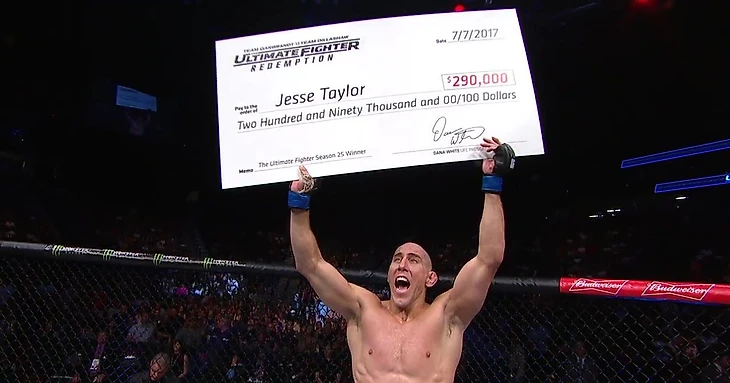 Джесси Тейлор в очередной раз показал, что нельзя сдаваться, нельзя опускать руки не смотря ни на что. На победу в шоу The Ultimate Fighter у него ушло долгих 9 лет. Он заработал 290 000 долларов, выиграл 25 сезон в 34 года и ушёл героем, на путь которого стоит смотреть всем нам, когда нам кажется, что мы чего - то не можем. Мы можем всё, а Джесси Тейлор - яркое тому подтверждение. Спасибо, Джей - Ти Мани.