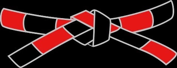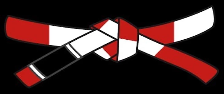 Красно-белый пояс получают при переходе к 8 дану, для получения красно-белого пояса рекомендуется носить красно-чёрный минимум 7 лет.