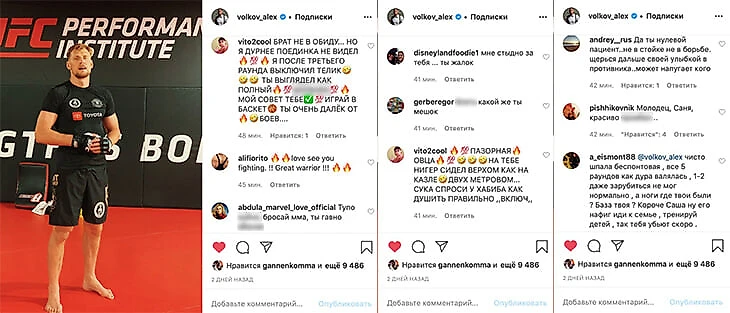 Почти все комментарии под последним постом Волкова в инстаграме за последние сутки содержали пожелания удачи и поддержку. После проигрыша там происходит примерно такое: