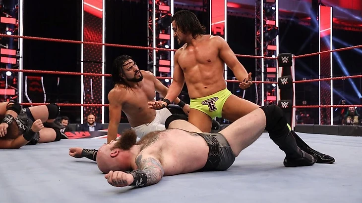 Энджел Гарза и Андраде против Биг Шоу — гандикап-матч.