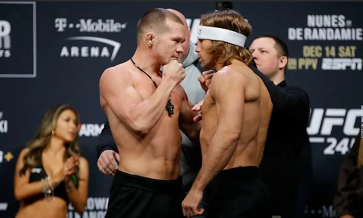 13 декабря 2019 года. Лас-Вегас. США. Петр Ян выходит на взвешивание против ветерана UFC и члена зала славы UFC американца Юрайа Файбера, который успел трижды до этого подраться за титул чемпиона лиги.