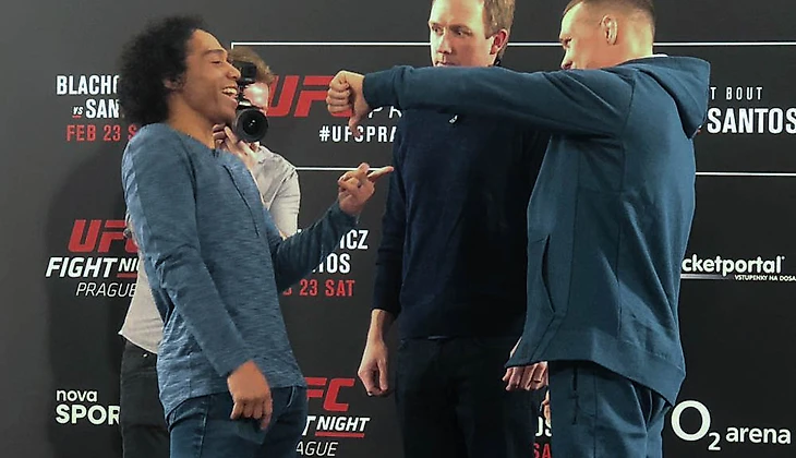 22 февраля 2019 года. Прага. Чехия. Один день до боя с восьмым номером UFC в легчайшем весе Джоном Додсоном. На взвешивании Петр начал включаться в игру UFC и в стиле Цезаря демонстративно опустил палец вниз.