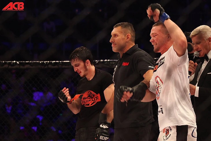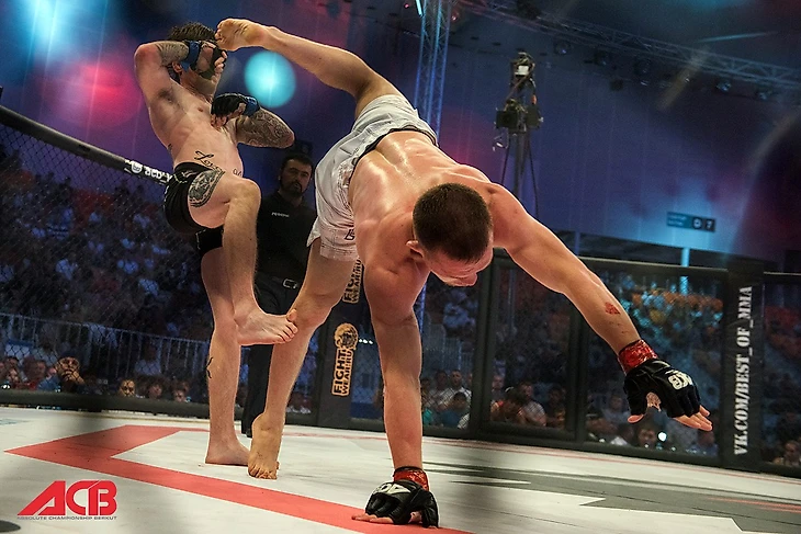 31 мая 2015 года. Грозный. Россия. Турнир ACB 19. Петр Ян поймал соперника на гильотину на 47 секунде первого раунда