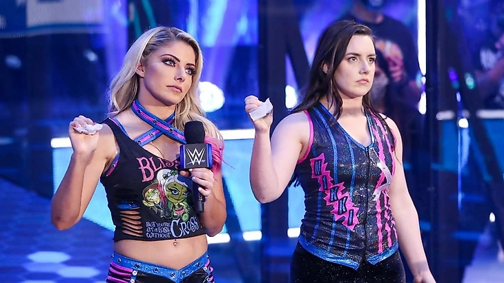 2) Алекса Блисс и Никки Кросс сразятся с Сашей Бэнкс и Бэйли в командном матче (С угрозой титулам последних - лихо всё разворачивается вокруг женских командных титулов);