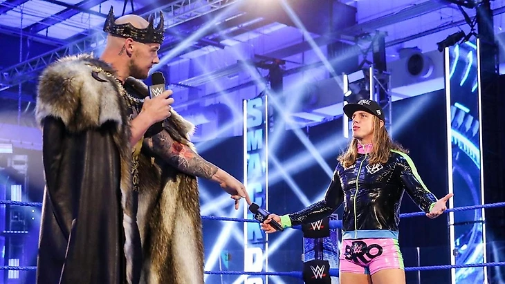 А открыл выпуск интервью, которое Майкл Коул решил взять у новичка бренда - "King of BROS" и "Original BRO" Мэтта Риддла. После напоминания о победе Мэтта над ИК-чемпионом ЭйДжей Стайлзом, Риддл поделился своими ощущениями - что он всё равно с трудом верит в то, как он оказался тут после своего перевода с NXT. При этом он уважает Стайлза как оппонента, но учитывая то как сам чемпион отнёся к Мэтту - то сейчас это уважение снизилось, в отличие от Дэниела Брайана, Дрю Гулака (опа-опа-опа) и даже Отиса. После второго вопроса от Коула насчёт своего стиля в экипировке, Риддл вспомнил о том, по какой причине он ходит в одних тапочках: во время своих каникул в Висконсине с ним произошла серьёзная беда - он получил сильное обморожение из-за постоянной ходьбы босиком по снегу. Ему грозила ампутация в случае новых осложнений и Мэтт решил отныне ходить, так как несмотря на то, что он чуть не потерял возможность ходить - отсутствие лёгкой чувствительности дало ему новые возможности в будущем. Риддл указал на то, что он намерен использовать всё отведённое ему время на синем бренде с максимальной пользой. С этим не согласился один человек...