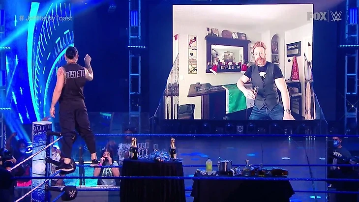 Джефф Харди прошёл к рингу, наполненному столиками с алкоголем - "Энигма" готов к встрече с Шеймусом. Но тот оказался у себя дома и вышел на видеосвязь для общения с Харди - он упомянул моменты с прошлой недели при участии Джеффа, но быстро перешёл к тому, что сейчас у Харди нет ничего в плане общего уважения от своих коллег. Из-за поисков быстрых решений своих проблем Джефф оказался на опасном перепутье, Шеймусу от этого не менее больно и он хочет помочь Харди решить эти проблемы одним разом. "Энигма" должен взять одну из бутылок и принять тост ирландца.