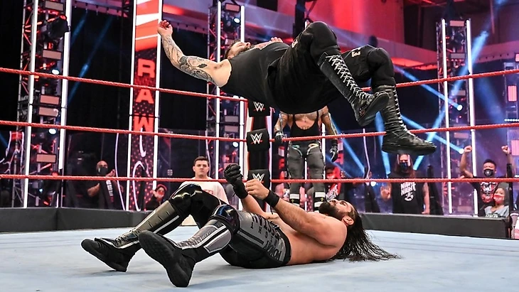 — Не обошлось без упоминания событий с прошлой недели в развитии фьюда между Сетом Роллинсом и Реем Мистерио: очередная стычка между Сетом с Мёрфи и Алистером Блэком с Умберто Каррилльо завершилась более-менее типично, хотя Умберто чуть не лишился глаза. А вот сегодня за кулисами Алистер Блэк был выбит из ранее анонсированного матча, так как подвергся атаке либо от Роллинса, либо от Мёрфи;