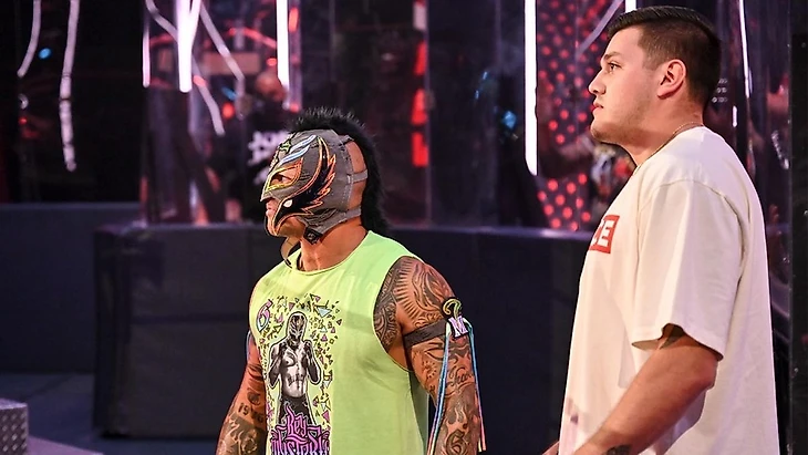 Собственно после рекламы бой начался со стычки между Мистерио и Мёрфи - куча перехватов и реверсов с доминированием Рея, ибо он сбросил хуррикенраной Бадди с апрона и прямо в баррикаду. Однако в ринге Мёрфи перехватил кроссбади Рея и чуть было не свернул лучадора до 3. КО получил тэг и принялся сам разбираться с учеником "Мессии", провоцируя Сета через Бадди - тот словил напоследок клоузлайн и чуть не был удержан. Мёрфи прорвался к Роллинсу и начался трибьют с WrestleMania 36 - Cет сошёл с ринга после сэнтона, а на рингсайде КО прилично погонял Роллинса. Смена тэгов и Мистерио с Мёрфи опять стали ускорять темп боя - Рей практически выходил на 619-кик, однако уход Бадди и отвлечение от Сета дали Мёрфи шанс для атаки: его энзигири попало в цель, но следующая атака была прервана Домиником. Хилы начали напирать на юного и младшего Мистерио, правда кроме как толчка в баррикады ничего не случилось.