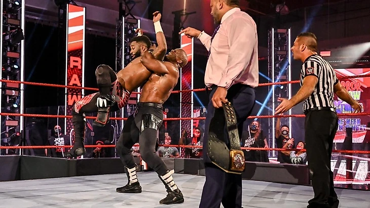 Перед началом боя, нам напомнили о событиях с прошлой недели (куда же без этого, снова), а также за кулисами Монтел и Бобби сообщили Чарли Карузо что готовы закончить рейн Аполло Крюса, раз он не хочет идти на контакт с ними мирно. И поэтому они оба сделают специальный анонс, причём так стильно как они и умеют это делать. После рекламы было анонсирован титульный матч между MVP и Аполло Крюсом на Extreme Rules за чемпионство США. А сами Портер и Лэшли уже были на ринге, подготовленном для их анонса - Монтел весьма ярко описал как он с Бобби заставили погаснуть огонь в глазах нынешнего чемпиона США. Лэшли показал реальную силу и Крюс оказался не готов к этому, правда Аполло всё равно проявил полное неуважение к деловой хватке MVP. Так что Монтел готов сделать самое главное для себя - он победит Крюса, отнимет его титул и... заменит его на тот титул, который он приготовил. Собственно его Монтел и решил презентовать раньше времени как символ новой жизни для титула, да и Лэшли показать как будет выглядеть чествование нового чемпиона. Эту репетицию прервали Седрик и Рикошет, которым просто не понравился один факт - Монтел и Бобби обидели их общего друга, нынешнего чемпиона. Так что они готовы поквитаться с последним лично и без церемоний.