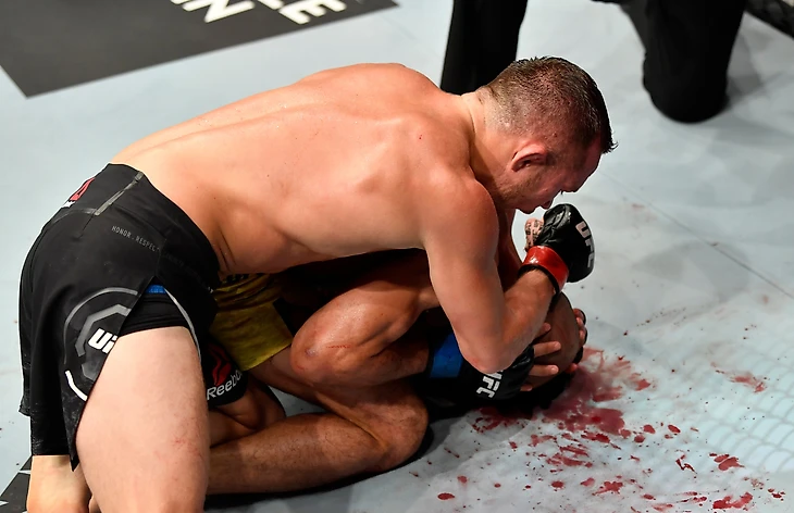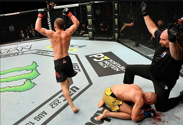 Сибиряк так и сделал. Даже перевыполнил план, не разбив - а забив. Но в этом вина исключительно Леона Робертса. Бойцы UFC часто жалуются на ранние остановки, но нередко в лучшем промоушне мира с якобы самыми квалифицированными судьями случается то, как не показывавшего активного сопротивления бойца добивают целую минуту с того момента, как жертва не подаёт признаков жизни. Именно так случилось и с Альдо, который лежал на коленях и неподвижно принимал урон. К счастью, он пришёл в сознание и после боя выглядел молодцом - но как вообще такое произошло, что человека тупо забивали без вмешательства судьи?