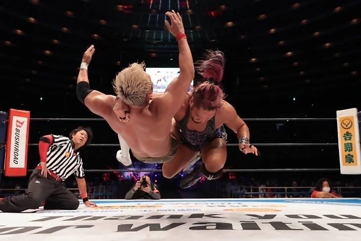 2) Ten-Koji (Хиройоши Тензан и Сатоши Коджима) против Хирооки Гото и Габриэля Кидда - командный поединок.