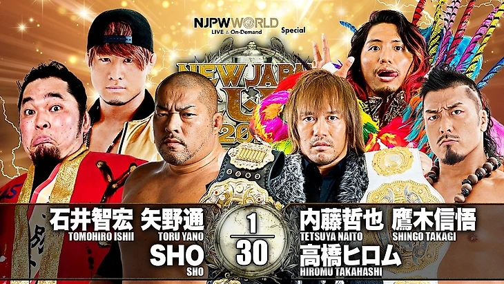 5) Golden Ace (Кота Ибуши и Хироши Танахаши), Рюске Тагучи и Юджи Нагата против Suzuki-gun (Таичи, Зак Сэйбр-мл., Эль Десперадо и Йошинобу Канемару) - командный поединок 4 на 4.