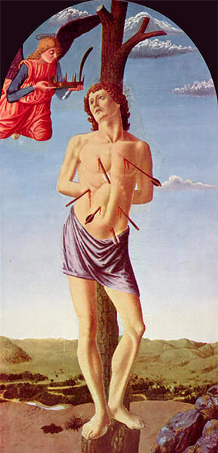 История Святого Себастьяна очень напоминала образ Али. Перед тем, как принять христианство, он командовал телохранителями римского императора
