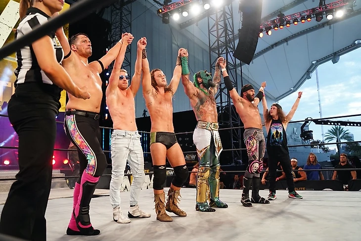 бой FTR, Young Bucks, Кенни Омега и Адам Пэйдж против Dark Order;
