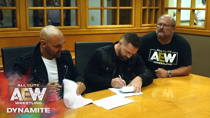 Нам показали, что «ранее сегодня» FTR подписали контракты с AEW. Тони Шивони курировал весь процесс, также на нем присутствовали юридический советник, а FTR пришли со своим адвокатом. Они заявили, что хотя быть командными чемпионами в будущем, и чтобы это случилось, им нужен консультант по командной работе, и эту роль выполнит Арн Андерсон, ведь он разбирается в командной работе, поэтому проследит за всем. Поздоровавшись со всеми и назвав FTR лучшей командной в мире, и решил просмотреть контракт. В нем указаны требования о десяти секундах на проведения командной работы в матчах, использование «tag team rope» и прописан подписной бонус. Потом Андерсон посекретничал с Кэшем и Дэксем чуть-чуть, и они о чем-то договорились. Уиллер также сказал, что они говорили с Тони Ханом, и тот пообещал им, что 12 августа пройдет «Tag Team Appreciation Night», и ее ведущими будут FTR. Все это прописано в контракте, подписантов все устраивает, поэтому бумаги были подписаны. И тут в помещение зашел Адам Пэйдж с вискарем и стаканами. Он поздравил Дэкса и Кэша с успешным подписанием и предложил выпить, налив им, Андерсону и себе. Арн отказался, вылив свой виски в стакан одного из FTR. Себе Пэйдж, кстати, налил до краев. Втроем они выпили, и Харвуд назвал пойло «дешевым»…