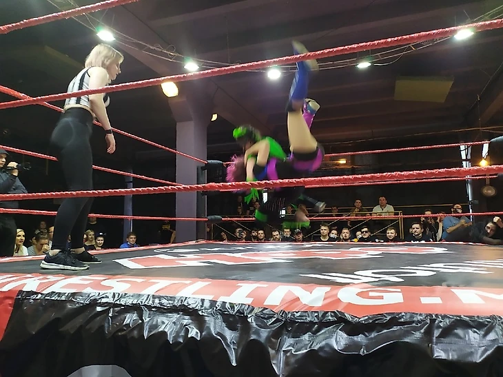 Рамону встретили очень тепло, а вот Элиту никто не встретил ни в зале,ни на вокзале. Чемионка НФР не приехала на шоу, так как бой был назначен за 2 дня до самого события, и она просто не успела. Но видеообращение все же записала. Чемпионка сказала, что ей пофиг на указания Никитина, тем более ей пофиг на Рамону, которая не заслужила пояс. Рамону такое не устроило (в один момент мне показалось, что она только что узнала об отмене боя, не знаю, как на самом деле было, но ее эмоции отлично чувствовались). Чемпионка NSW зачитала максимально правильное и эмоциональное промо о том, что болельщики заслуживают уважения со стороны Элиты, и пообещала вернуть титул домой. Но зрители были немного опустошены после предыдущего боя, так что реакция была чуть менее бурной, чем ожидалось. Это именно к вопросу о расстановке матчей, о которой говорил Grannary.
