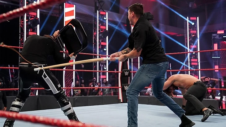 — На ринге Ная Джекс в сопровождении Пэта Бака (продюсера, который на прошлой неделе стал жертвой хулиганских действий Наи и Шейны Бэйзлер) пыталась вроде как принести свои извинения. Но резко начинает издеваться над Пэтом, так как она не чувствует себя виноватой перед ним за прошлую неделю. И поэтому она выдвигает ему ультиматум: либо он соглашается на поединок с ней прямо сейчас и получает обещанные извинения, либо же он катится ко всем чертям со своими требованиями. Пэт не намерен вестись на провокации и официально объявляет об отстранении Джэкс от работы на неопределённый срок. Самоанка в ярости от данного решения и опять избивает Бака (Вот вам и феминизм в его отрицательном ключе - всё что угодно, лишь бы девушки были бы в максимально выгодном свете и не хуже мужиков. Флэшбеки с Royal Rumble 2019 ударили по Нае и букерам как следует, поэтому вот такой цирк мы и заценили. И да - учитывая это всё, нас похоже ждёт несанкционированный матч между Джэкс и Бэйзлер на SummerSlam)