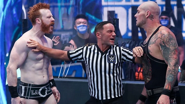 Ранее после оупенера между Шеймусом и Корбином была стычка из-за атаки от Чада Гейбла - ирландец лихо наехал на "Короля", так как был в курсе того, что Чад работал по наводке Бэрона. Последний тогда не принял во внимание угрозы Шеймуса и "Кельт" решил действовать без всяких церемоний - он ответил тем же Бэрону в его матче и даже добился очной встречи 1 на 1. Прямо сейчас причём...