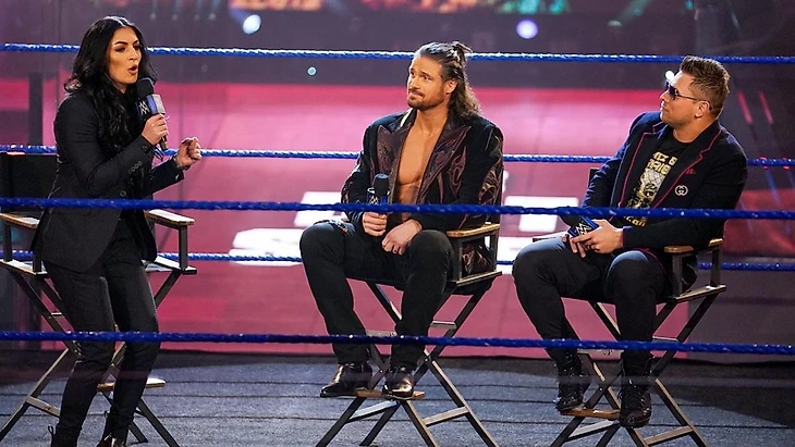 — Также в начале выпуска прошёл The Dirt Sheet с нашей голливудской парой друганов. Они решили обсудить тему вокруг Мэнди Роуз и Сони Девилль после их полудраки на прошлой недели, когда Соня чуть было не сняла скальп с Мэнди. После байта с проблемами оборудования и ложного сочувствия по поводу очередного скандала между бывшими подругами - Миз с Джоном принялись выяснять "шокирующие подробности" у "причёски" мисс Роуз. В общем всё было тизером к появлению самой Сони, которая решила объяснить свои действия - общий посыл её слов свёлся к тому, что Роуз теперь соответствует внешне своей душе, которая была невероятно уродливой. Соня обещала испортить той её жизнь и она это выполнила, так как теперь Соня чувствует себя абсолютно свободной от постоянных хотелок Мэнди по поводу своей внешности и прочих глупостей, которые были важны только ей и никому больше. Хотя Девилль также взбесил тот факт, что Мэнди с Отисом получили большую специальную награду за поцелуй на WrestleMania 36, но её успокаивает другой факт - что теперь они оба подходят друг другу идеально, не без её "помощи". Моррисон и Миз поддерживают Соню притчей об ограх и тем самым провоцируют Heavy Machinery пойти в атаку - драка продлилась на одно мгновение и Соня выручила своих коллег (Видимо Соня проявила характер в том, чтобы доверить ей возможность читать промо. И это себя оправдало, плюс благодаря этому Девилль теперь не похожа на поехавшую из-за зависти истеричку).