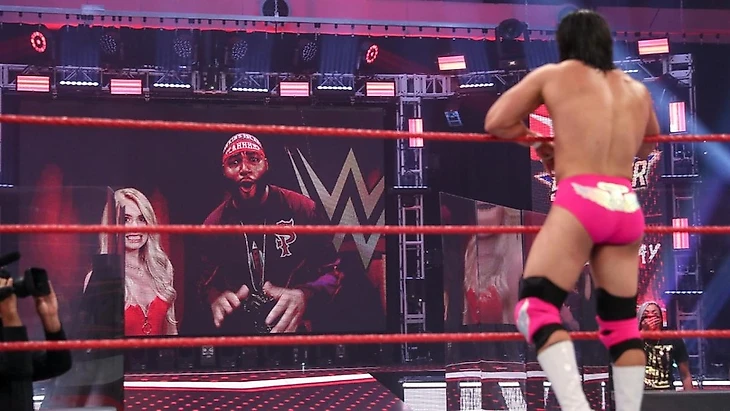 Вега и Гарза присутствовали в углу «Эль Идоло». Форда сопровождал Докинс. Гонг прозвенел, и рестлеры стали наносить друг другу удары, после чего Монтез отправил соперника за пределы ринга дропкиком и добавил дайв через третий канат. Фрогсплэш в ринге, однако, был поспешным решением, и Андраде заскочил к противнику на третий канат, шарахнув суперплекс до 2. От удушающего Форд отбился, проведя пару клоузлайнов и стэндинг мунсолт до 2. Андраде в следующий момент встретил его ногами в углу, но получил суперхарриканрану. Вновь Монтез вышел на фрогсплэш, однако на апроне возникла Вега, отвлекшая командного чемпиона RAW. Внезапно за ее спиной на рингсайде возникла Белэйр. Зелина полетела на нее, но Бьянка прервала кроссбади и провела слэм. Андраде слишком засмотрелся на все это и прозевал сворачивание Форда до 3.