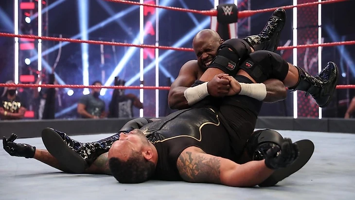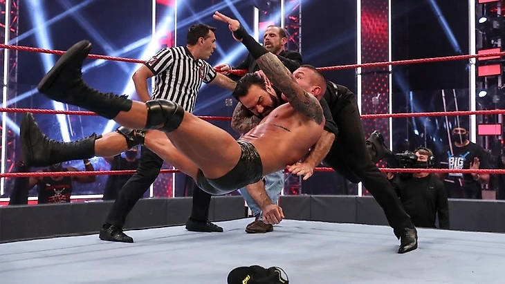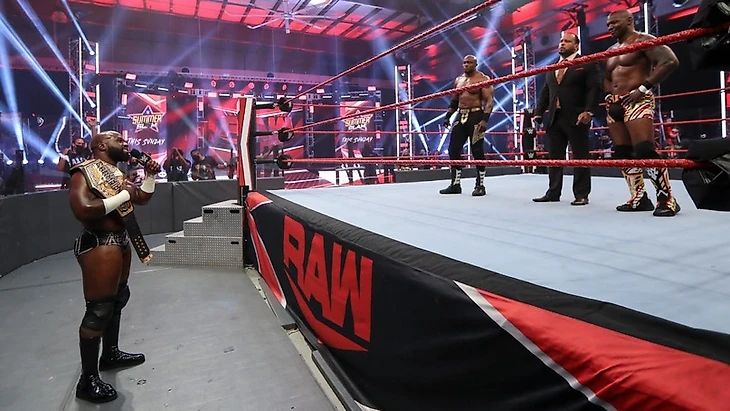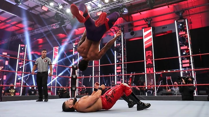 Первый матч на RAW за почти полчаса телевизионного времени. С рекламы мы вернулись, увидев как Крюс сохраняет контроль над матчем, однако Шелтон пригвоздил его к канвасу лэриэтом, перехватив инициативу. Потерпев чуть-чуть, Аполло поймал визави спайнбастером, чтобы почти сразу попасть под DDT. Бенджамин собрался было провести бомбу, но вдруг в ринг сначала забежал Ар-Труф с титулом чемпиона 24/7, затем за ним побежали Тозава и его ниндзи. Шелтон на это отвлекся, Крюс как раз передохнул, так что уже в следующий момент перевел попытку бомбы в сворачивание до 3. Сразу после финального гонга Hurt Business в полном составе принялись избивать чемпиона Соединенных Штатов, но ему на помощь прибежали Седрик, Рикошет и Мустафа Али. Вчетвером они смогли отбиться от ЭмВиПи и его банды, однако с Лэшли им пришлось очень непросто. Казалось бы, конец, однако Ар-Труф опять появился на арене, и тут его срубил клоузлайном Бенджамин, удержав до 3, и став новым чемпионом 24/7. А ЭмВиПи взял в руки микрофон и заявил, что его достало уже это неуважение в исполнении всех и вся, поэтому он вызвал троих из четверки Крюс-Али-Рикошет-Александр на командник 3 на 3 на выбывание.
