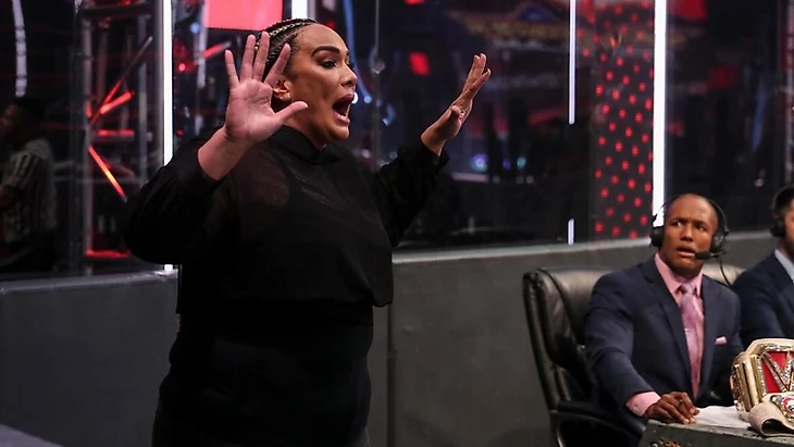 После рекламы за кулисами Гарза стал требовать у Анджело удалить номер Бернетт из телефона (Деми и Докинс обменялись контактами за секунду до этого), а потом появились Вега и Андраде, причем первая стала требовать, чтобы командный чемпион удалил… то самое видео. Ко всему этому движу присоединилась еще и Чарли, спросившая у Анджело, что это все-таки за видео. Ну он и попросил кого-то из закулисных работников наконец врубить его. На записи четко видно, как Зелина подмешала какую-то дрянь в кофе Монтеза Форда (вот это поворот). Карузо попыталась задать вопрос Веге, но та сначала сказала, что видео ничего не доказывает, кроме того, что на ней в тот момент был крутой пиджак, а потом и вовсе обвинила Чарли в подтасовке и фальсификации, мол, интервьюерша ревнует Гарзу к Деми, поэтому и творит всякое. Анджело это наконец достало, он заткнул менеджера мексиканцев и стал высказывать ей претензии, ведь если ты сделал что-то нехорошее его напарнику, Докинс воспринимает это лично, словом, не обещал он претендентам ничего хорошего. Внезапно в кадр влетел Форд, и вместе чемпионы отвесили пару ударов соперникам, прогнав их подальше и подтвердив угрозы Анджело 5-секундной давности. Я уже сказал, что все это было до жути предсказуемо. И мне лично печально, что 4 крутых рестлера получили вот такой сюжет к главному PPV лета, вместо того, чтобы делать то, что они делают лучше всего. Да, это не та наркомания, что была у Street Profits с Viking Raiders, но в целом, теорема Эскобара, как бы.