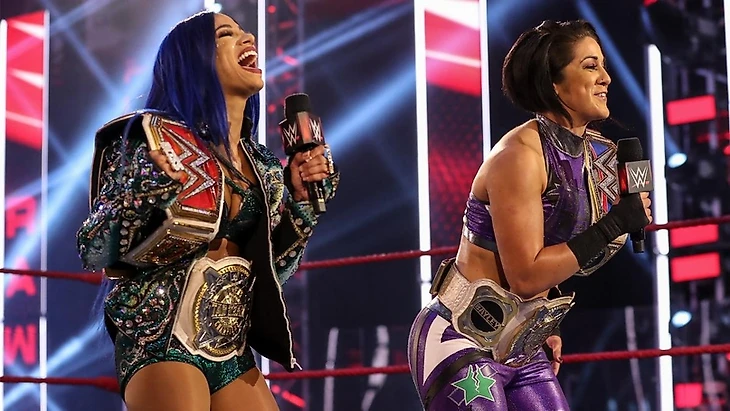 Мы просмотрели без малого половину RAW, и наконец увидели первый хороший матч. Да, не классика и даже не то, чтобы рекомендованный к просмотру, но вполне себе достойный командник, в котором было все на месте. Я не удивлюсь, кстати, если на Payback Саша и Бэйли будут защищаться от Шэйны и Аски. Также не удивлюсь, если этот матч вдруг состоится и станет лучшим на Payback. Но есть всего пара моментов. Первый — это положение Бэйли… Ну как бы чемпионка SmackDown, которая титул таскает где-то полтора года с перерывом на неделю, сдается второе RAW подряд. Я, конечно, понимаю, что что-то надо менять, я сам давно говорю, что ситуация с женским чемпионством «Смэка» как-то утомила. Но чтобы так относится к обладательнице пояса… О втором моменте — более общем — скажу в конце.