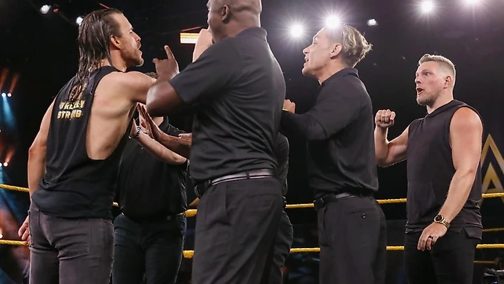 На ринг вышла Неосоримая Эра и вызвала на ринг МакАфи. Тот вышел со своими друзьями из NFL. Он знает о том, что Адам везде водит с собой ещё трёх человек и не способен выйти один на один, поэтому МакАфи привёл с собой 28 лет опыта в NFL. Коул тут же попросил остальных участников Эры покинуть ринг и позвал к себе Пэта. Бывшего футболиста возмущает тот факт, что Адам назвал его не особенным. Разве нет ничего такого в том, что МакАфи хватило одной минуты, чтобы нокаутировать самого продолжительного чемпиона NXT в истории две недели назад. Пэт смог поднять миллионы на 7 предыдущих профессиях и готов это сделать на 8-ой. Он собирается нокаутировать Коула на Тейковере, потому что бывший футболист считает себя лучше чемпиона Тройной Короны NXT во всём. После всех слов Панамский Плэйбой двинулся к подкастеру, но его остановила охрана, которую Адам довольно быстро устраняет. Тогда на защиту Пэта встают футболисты, в ответ на ринг возвращаются О'Райли, Фиш и Стронг. Первые не решаются вступить в открытую драку с Неоспоримой Эрой и Коул оставляет последнее сообщение своему оппоненту: он собирается сделать из него свою сучку на Тейковере.