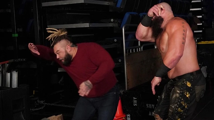 Чемпион Вселенной WWE решил поменять общий план и добрался до весельчака Брэя в его же "доме" (шок-контент во всех ТВ-утюгах планеты). После рекламы драка между бывшими соратниками продолжилась за кулисами и никто не мог угомонить обоих, а Брон и вовсе сбросил Брэя с приличной высоты на бетонный пол. Сотрудники арены быстро вызвали карету скорой помощи и стали готовить Уайатт к отправке в больницу. Сам Брэй был без сознания в этот момент, а карета скорой помощи долго не могла уехать с арены. Продюсеры возмущались по этому поводу, что усилилось когда машина дала задний ход - они успокоились когда перед ними появился "он", Изверг. Он показал язык на камеру и на его сумасшедшем смехе шоу вышло из эфира.