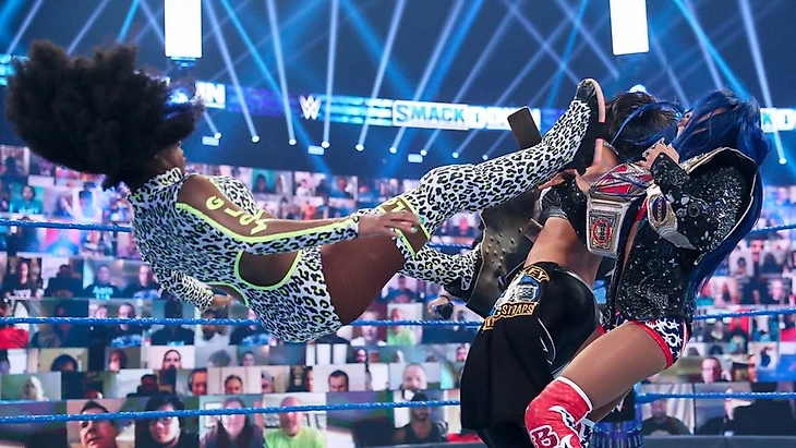 Женская чемпионка Смэка решила получить куда больше преимущества и атаковала Наоми до матча. А после его начала - долгое время не давала Наоми хоть как-то ответить, проводя силовые атаки и попытки удержания после них. Спустя около минуты Наоми пришла в себя и провела бульдог в угол ринга, чтобы хоть как-то угомонить агрессию Бэйли - это не очень сработало, так как следом последняя провела клоузлайн. Удержание тут не вышло снова и Бэйли пыталась пойти в атаку связкой из колена и возможно Rose Plant - удар с колена был блокирован Наоми, а вот второй заход был встречен Rear View от всё той же Наоми и после этого Бэйли была удержана до 3.