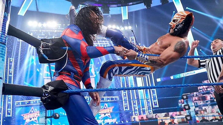 Личное мнение автора обзора: тут матч вышел ещё короче, чем недавно прошедший оупенер. Но тут команды реально постарались на славу, причём урон скоростей и интенсивности напоминал правила Tornado Tag Team Match. Бывали моменты на грани ботчей конечно, но благо ничего критического не случилось и бой в целом выдался на славу - правда было бы лучше поставить этот матч на кик-офф SummerSlam, а не на последний выпуск бренда перед PPV. А вот что касательно послематчевой разборки между членами LHP - то лично для меня это сигнал к тому, что было около года назад во время отсутствия Калисто на 205 Live. И тут мне стоит напомнить: c 30 июля против 17 августа 2019 года Дорадо был объектом манипуляции Арии Дайвари, что чуть не привело тогда к распаду LHP. Линсе удалось победить в том противостоянии и не пойти на поводу у хитроумного иранца. Но сейчас ситуация идёт к тому, что распад LHP может пойти по новому пути - и главным его инициатором могут стать либо сам Калисто, либо Дорадо со второй попытки сдетонирует и на этом история Lucha House Party будет окончена?