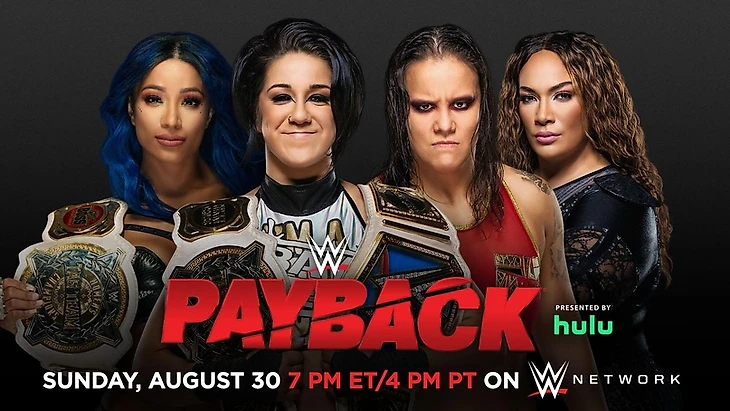Саша Бэнкс и Бэйли (ч) против Найи Джэкс и Шэйны Бэйзлер - матч за женское командное чемпионство WWE.